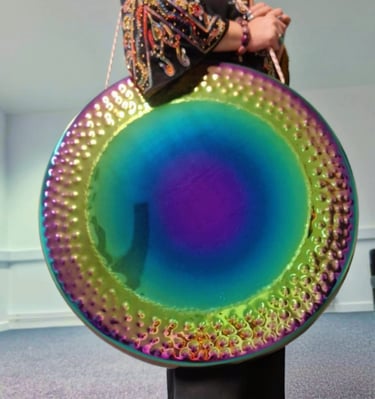 Gongs "Aura" 28 inch and "Vento" 18 inch – Deep, layered cosmic vibrations that support emotional release and transformation. Gong frequencies are known for their ability to “shake loose” stagnant energy and promote a feeling of renewal. The sound waves can encourage the body to soften tightness, improve relaxation of muscles, and support physical ease.Crystal and alchemy singing Bowls tuned to 432 Hz – Resonant tones that help clear the mind, release emotional blockages, and bring the body into balance.
